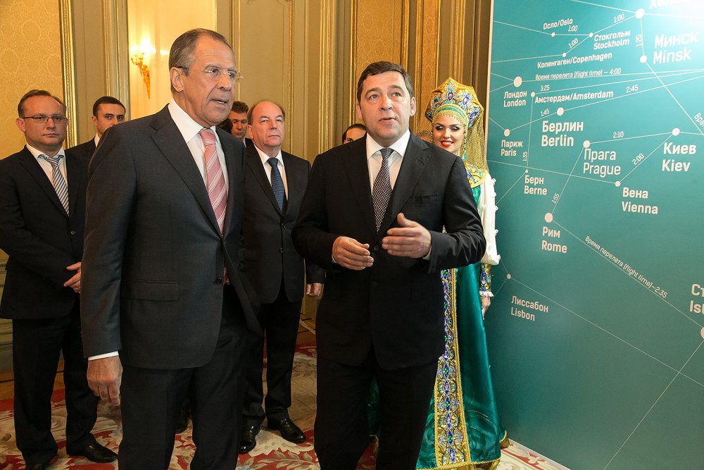 Презентацию открыл Сергей Лавров, который высоко оценил уровень взаимодействия между МИДом и администрацией Свердловской области по развитию и диверсификации международных внешнеэкономических связей региона. Министр особо отметил значительный промышленный, научный и культурный потенциал региона, его успехи в развитии ряда направлений экономики, в том числе машиностроения, электроэнергетики, химической промышленности, производстве электронного и оптического оборудования.