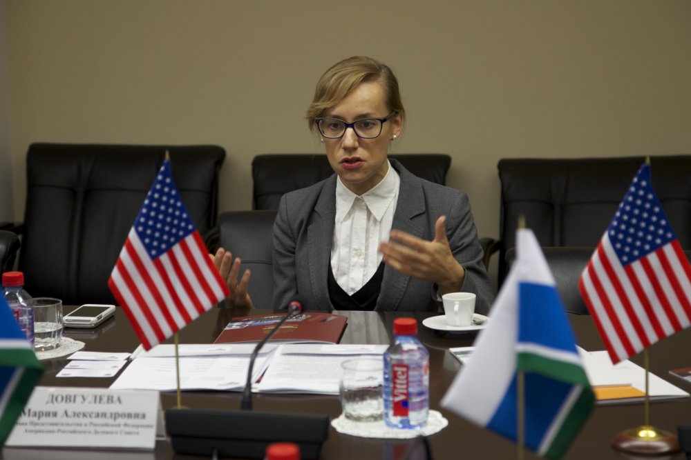 Глава представительства Американо-Российского Делового Совета (АРДС) Довгулева Мария представила презентацию работы АРДС представителям Свердловской области и сказала, что АРДС работает по схеме американской торговой палаты.