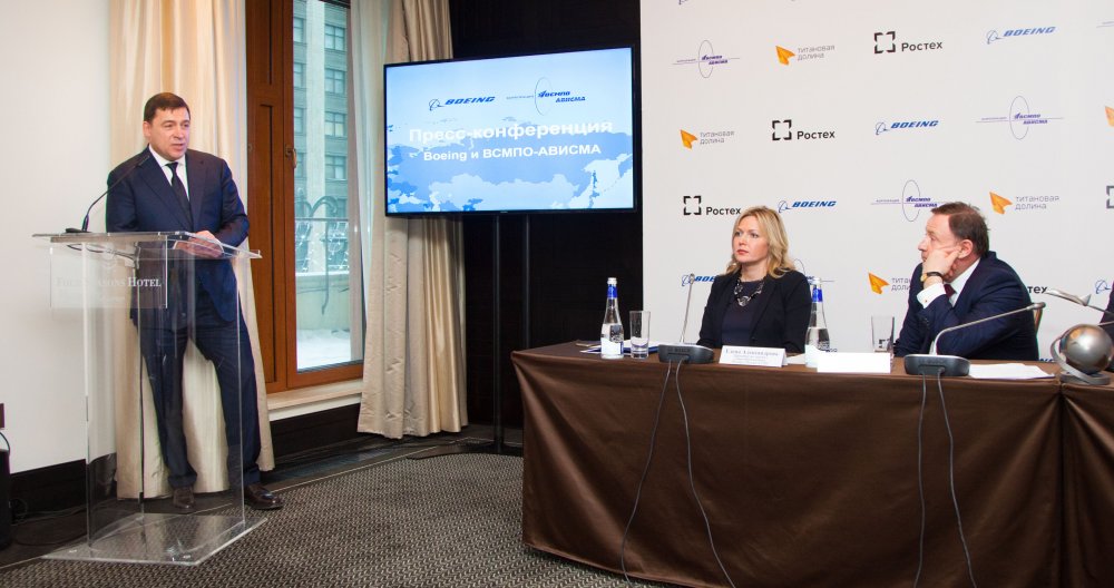 В присутствии Евгения Куйвашева и заместителя председателя совета директоров ВСМПО-АВИСМА Михаила Шелкова был подписан сертификат о расширении сотрудничества между Boeing и ВСМПО-АВИСМА. Подписи под документом поставили президент компании Boeing в России и СНГ Сергей Кравченко, генеральный директор ВСМПО-АВИСМА Михаил Воеводин и генеральный директор "Титановой долины" Артемий Кызласов.