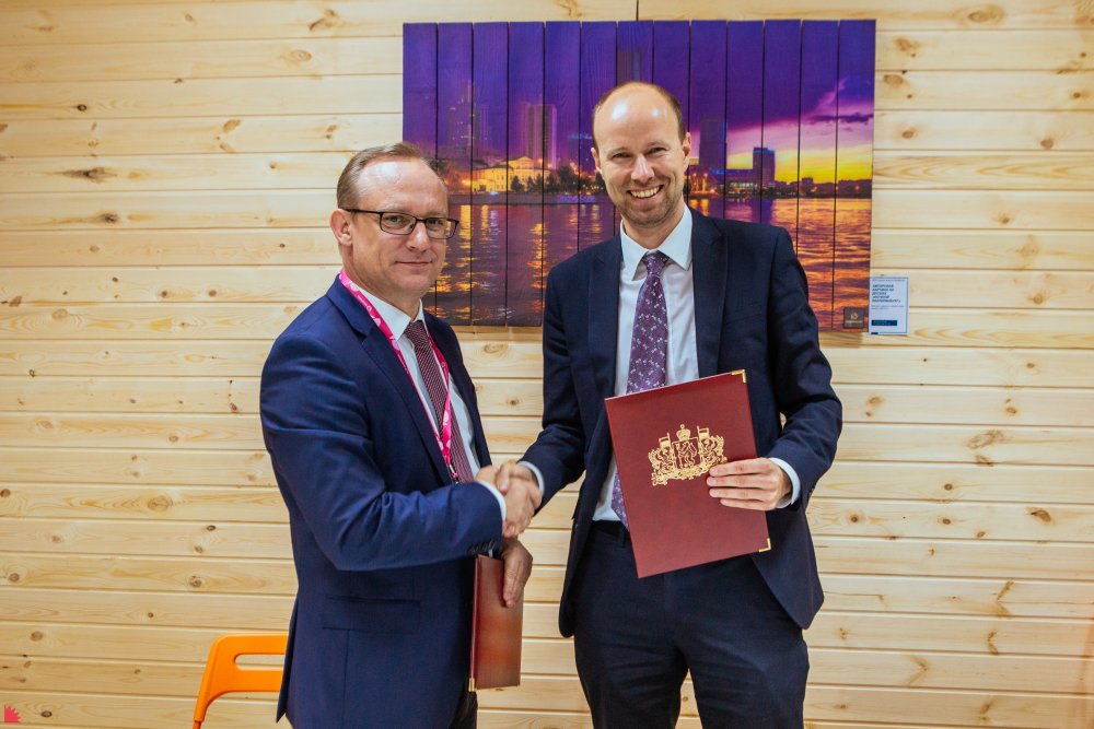 Подписи под документом поставили Постоянный Представитель Губернатора Свердловской области при Президенте Российской Федерации Александр Овчаров и Генеральный директор Технопарка Денис Скоморохов.
