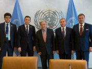 Генеральный секретарь Организации Объединенных Наций Антониу Гутерриш и губернатор Свердловской области Евгений Куйвашев обсудили возможность проведения в Екатеринбурге крупных форумов мирового уровня и мероприятий ООН.